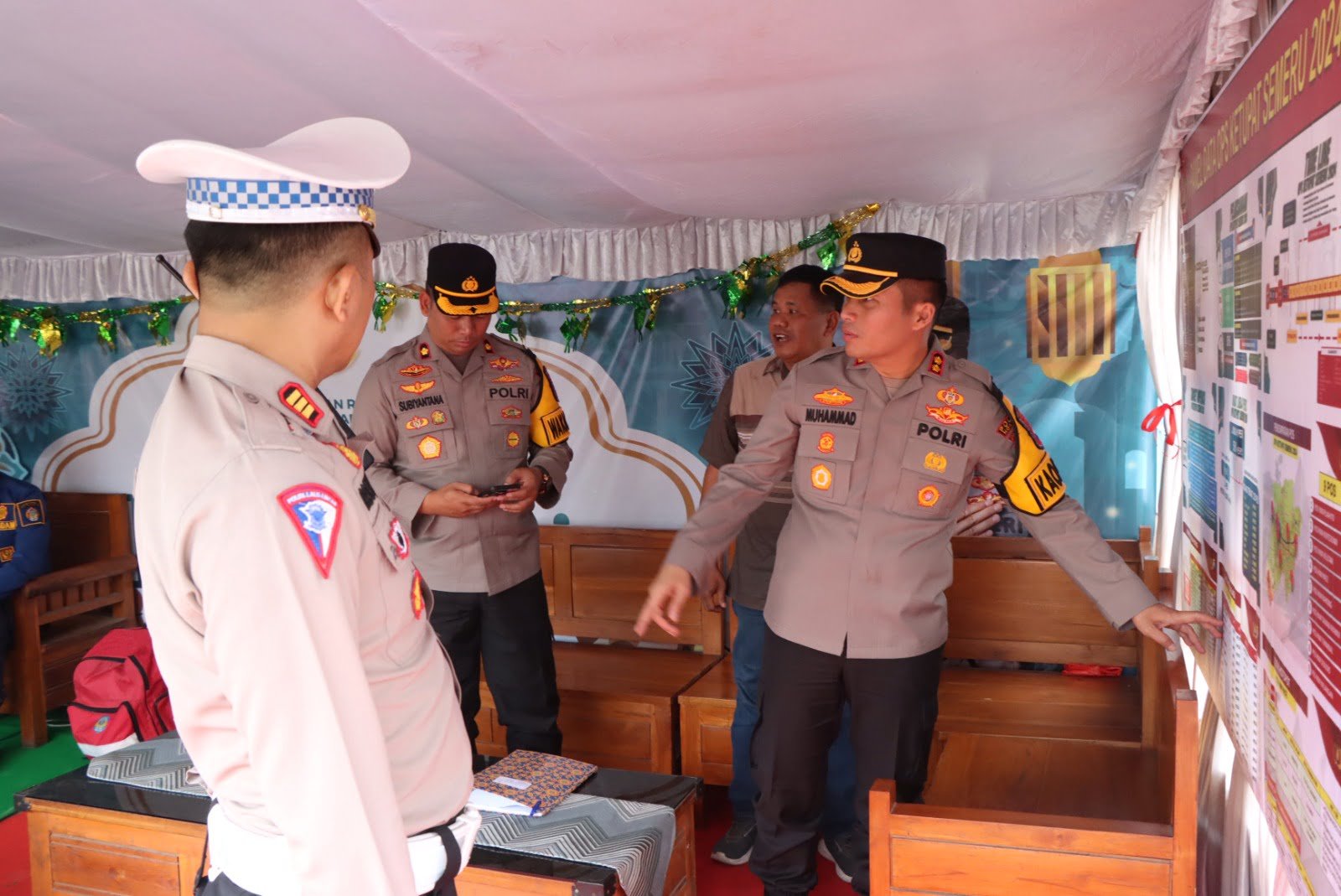 Kapolres beserta rombongan melakukan pengecekan secara menyeluruh dari performa petugas dan alat pendukung operasi di 8 pos Pengamanan dan 1 pos pelayanan yang dipersiapkan untuk menghadapi arus mudik dan balik pada libur lebaran Idul Fitri 1445H/2024M.