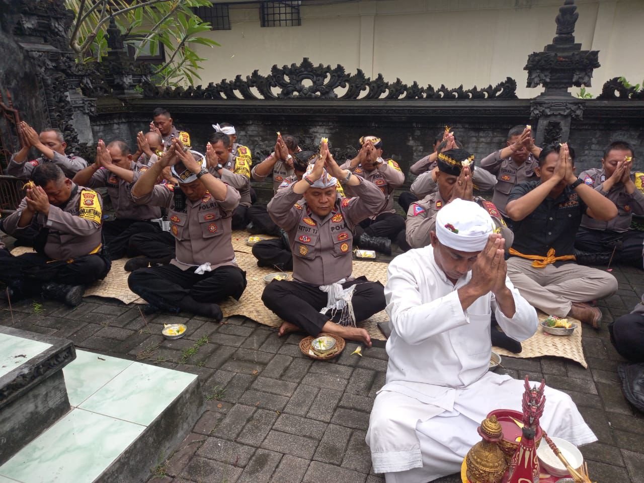 Rangkaian kegiatan persembahyangan ini dipimpin oleh Jro Mangku Ida Bagus Gede Putra Wirasani yang di ikuti oleh personil polsek mengwi yang beragama hindu