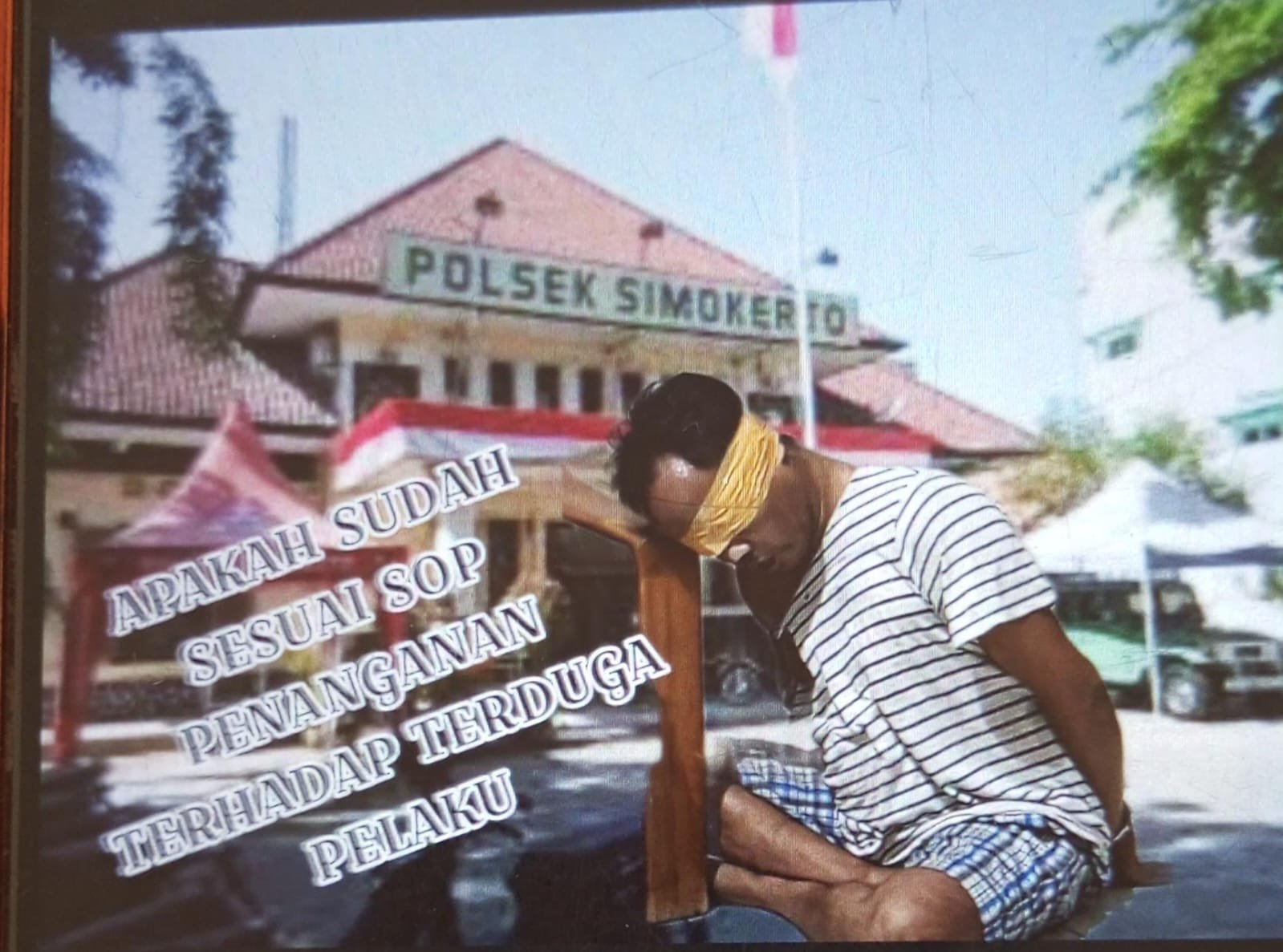 Dalam hal ini, Korwil Jawa Timur Komite Pendukung Presisi Polri mempertanyakan apakah dalam penanganan Terhadap terduga tersangka harus kedua matanya harus di tutupi dengan lakban apalagi kedua tangannya sudah di borgol kebelakang, apakah Masih khawatir itu pihak Polsek Simokerto padahal terduga tersebut sudah didalam kantor kepolisian sektor Simokerto.