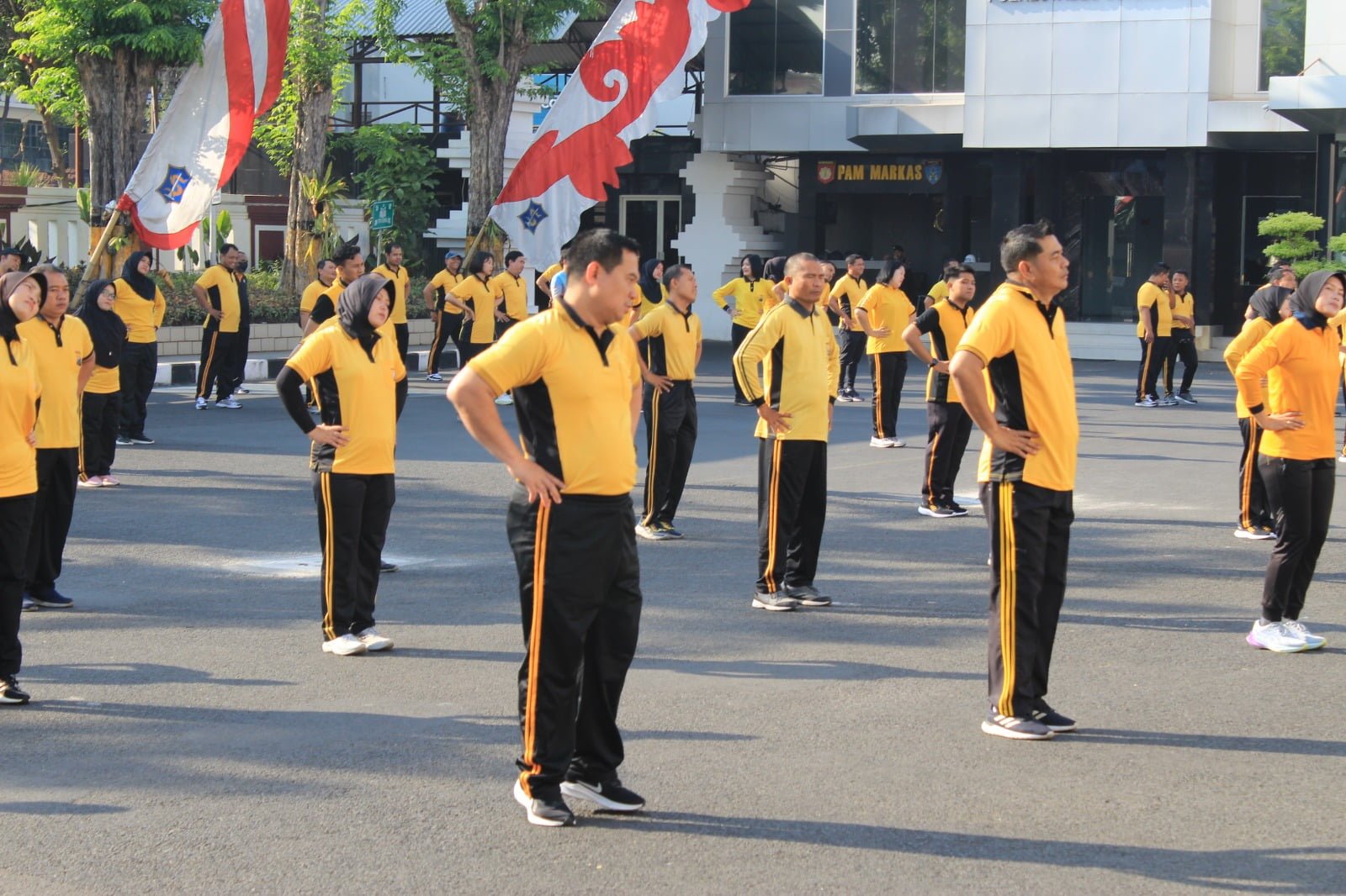 Untuk Menjaga Kebugaran Polrestabes Surabaya Gelar Olahraga Rutin Setiap Sabtu Pagi