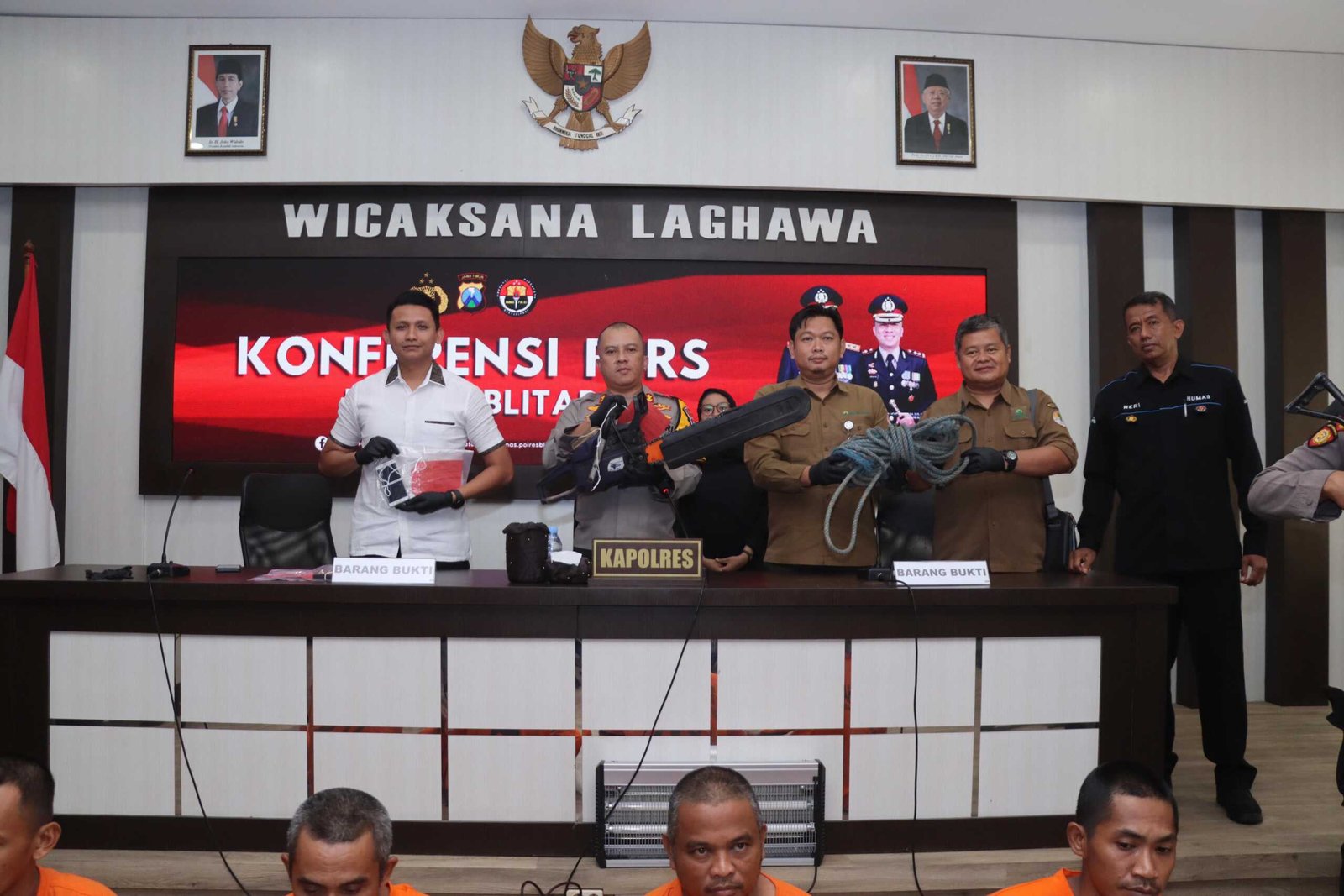 Kapolres Blitar AKBP Dr. Wiwit Adi Satria SH. S.I.K MT dalam konferensi pers di Rupatama Wicaksana Lhagawa mengatakan, awal ditangkapnya 4 tersangka karena ada laporan dari pihak Perhutani Blitar.