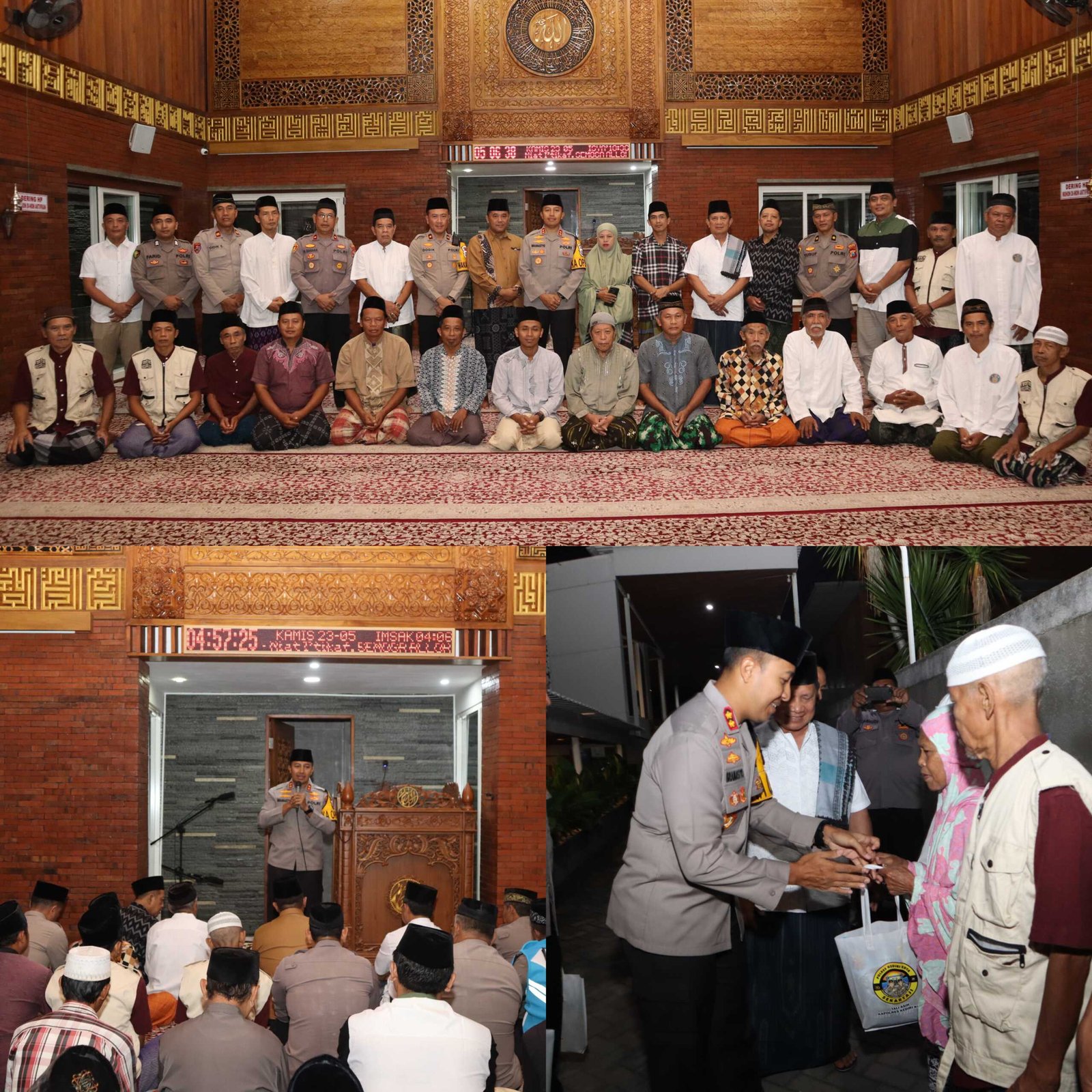 Selesai kegiatan sholat subuh berjamaah Kapolres Kediri Kota memberikan bingkisan sembako kepada marbot, penggali makam serta warga yang membutuhkan di sekitar masjid.