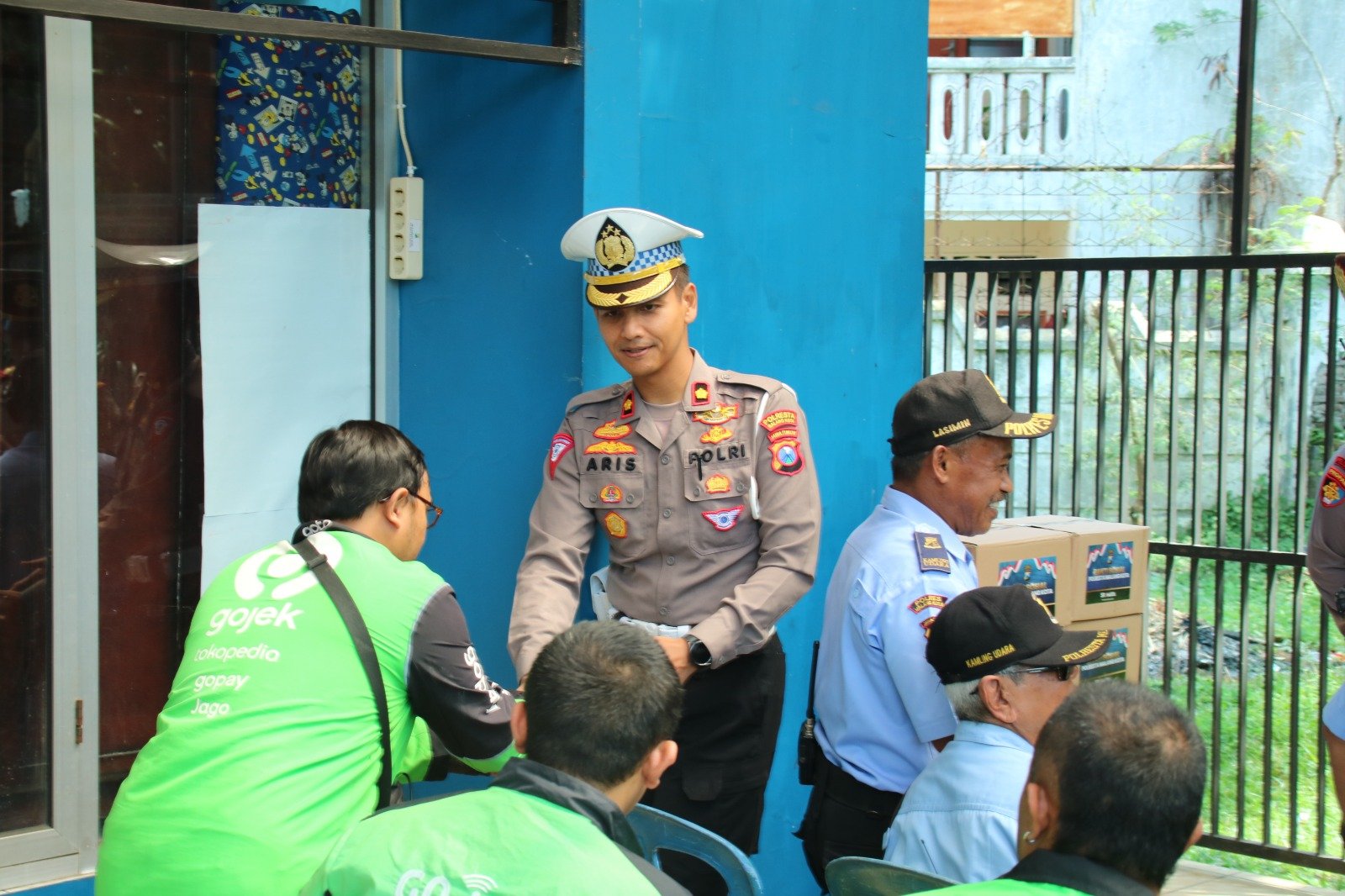 Bantuan sosial ( Bansos) berupa paket sembako diberikan kepada driver ojek online dan masyarakat Kamling Udara yang berlokasi di Pos FKPM Jl. Veteran, pada Jumat (24/5/2024).