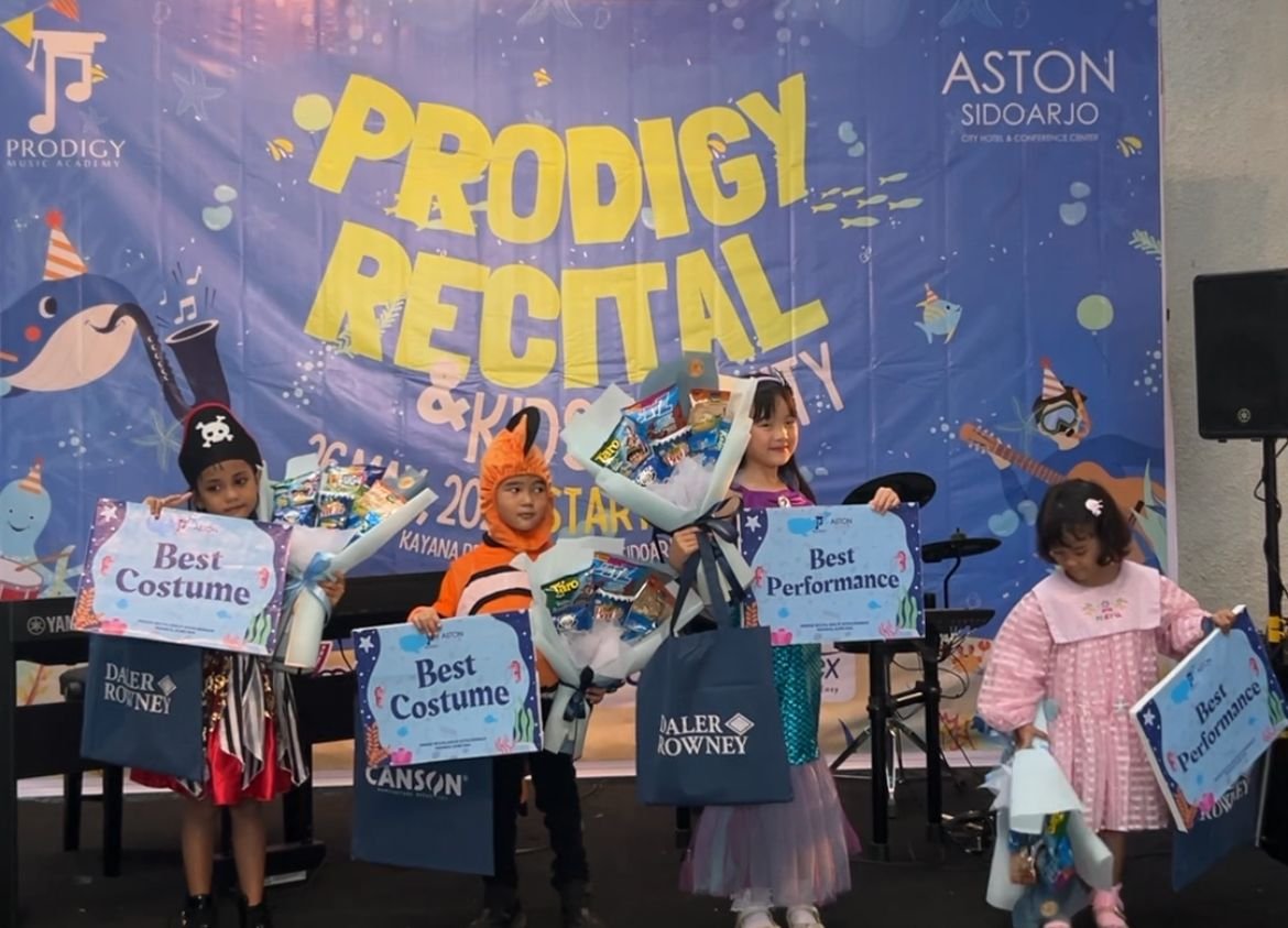 Sidoarjo, bnewsnasional.id - Dalam momen long weekend kali ini, ASTON Sidoarjo menggandeng Prodigy Music Academy dalam menyelenggarakan Recital Mini Concert & Cooking Class untuk mengapresiasi musisi muda berbakat di Sidoarjo serta memberikan pengalaman liburan sekolah yang berbeda. Diikuti oleh 70 peserta anak mulai usia 4 - 10 Tahun yang sebelumnya sudah melalui latihan berbulan-bulan lamanya, penampilan peserta sanggup memukau para penonton yang terdiri dari orang tua serta tamu hotel.