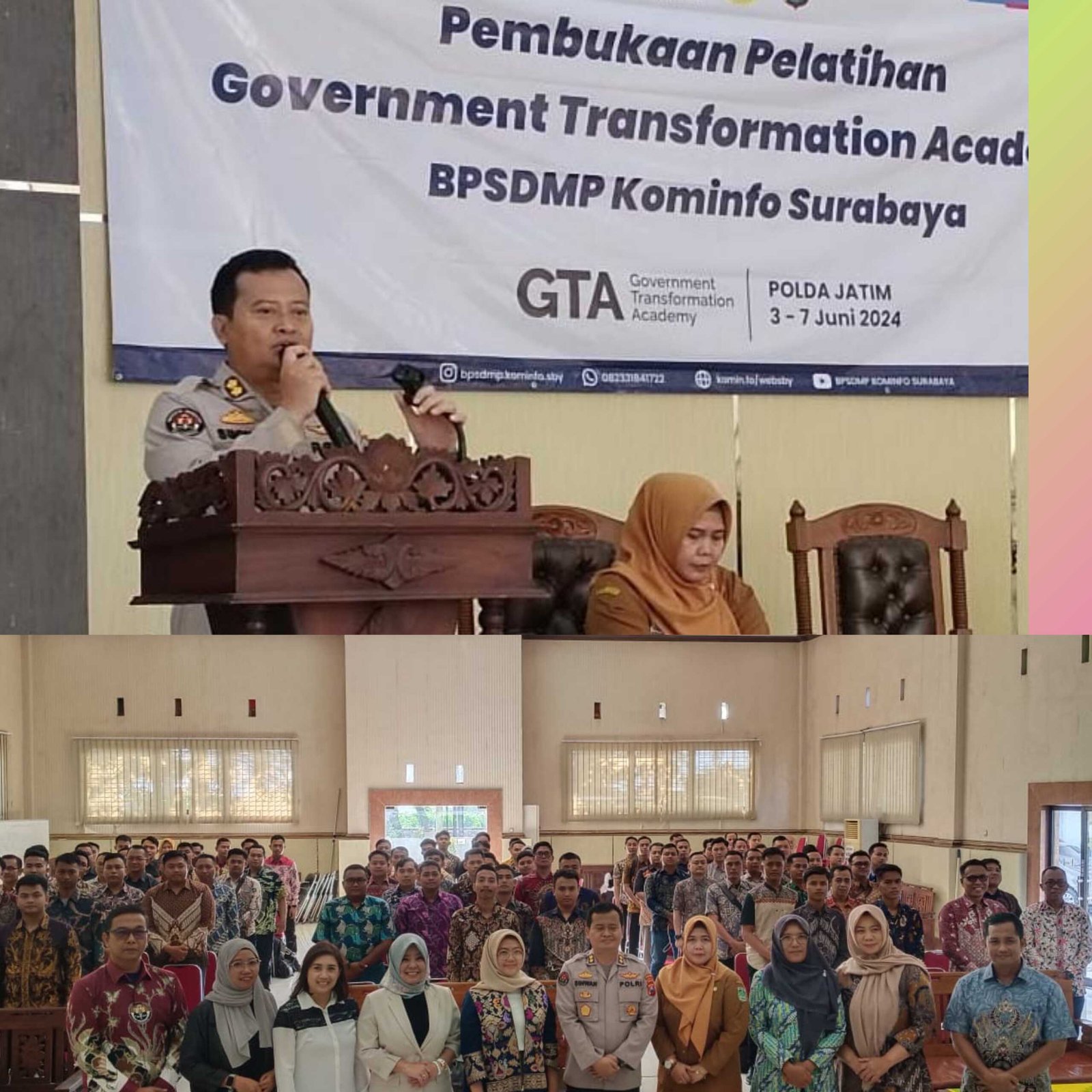 Pasuruan, l bnewsnasional.id - Bidang Hubungan Masyarakat (Bidhumas) Polda Jawa Timur bekerja sama dengan BPSDM Kementerian Kominfo menggelar pelatihan Pelatihan Goverment Transformation Academy ( GTA ) di BLKD Rejoso Kabupaten Pasuruan, Senin (3/6).