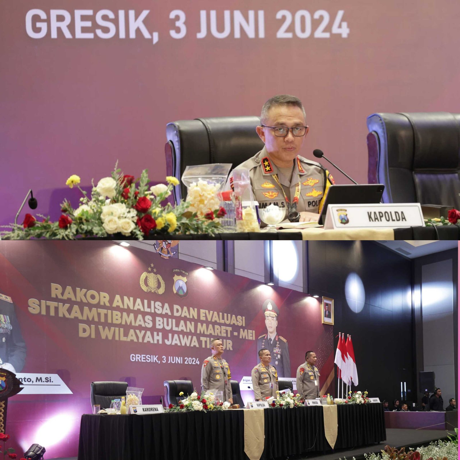 "Saya ucapkan Terima kasih kepada para Kasatker dan Kasatwil jajaran serta seluruh personel Polda Jatim atas pelaksanaan tugas kamtibmas secara optimal pada bulan Maret sampai Mei 2024,”ungkap Irjen Pol Imam Sugianto, saat membuka anev sitkamtibmas di Gresik, Senin (3/6/2024).