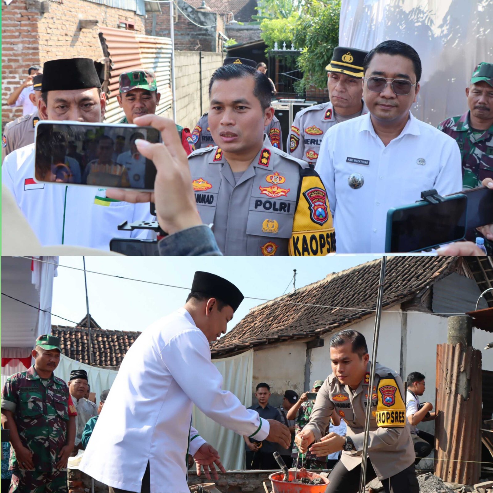 Nganjuk l bnewsnasional.id - Kapolres Nganjuk, AKBP Muhammad, S.H., S.I.K., M.Si., didampingi Pejabat Utama(PJU), para Kapolsek, Ketua Baznas Kabupaten Nganjuk serta unsur Forkopimcam Nganjuk dan pemerintahan kelurahan Kramat, hari ini melaksanakan peletakan batu pertama kegiatan Program “Bedah Rumah” dalam rangka HUT Bhayangkara Ke 78 tahun 2024, Rabu (12/06/2024).