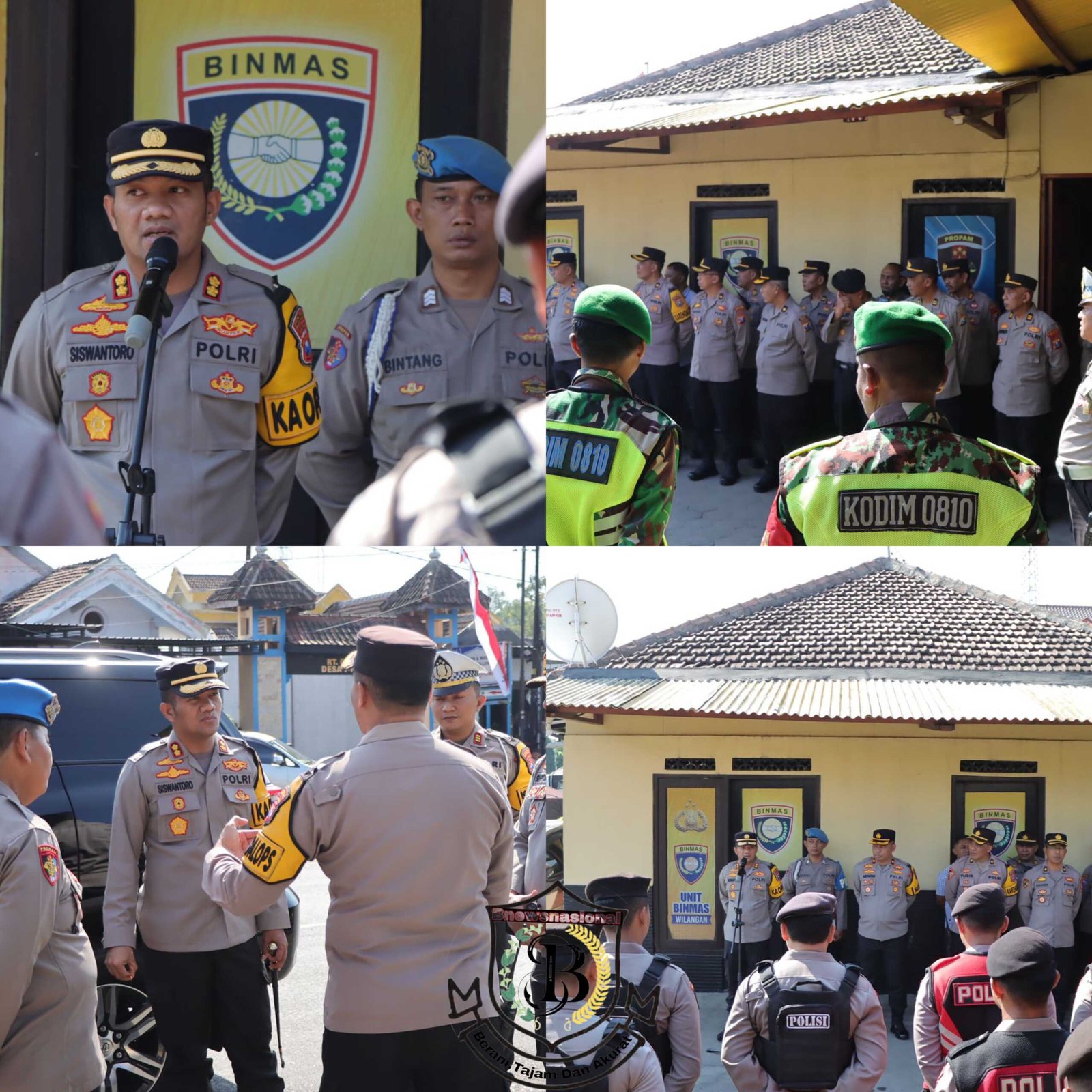 Nganjuk l bnewsnasional.id - Kapolres Nganjuk, AKBP Siswantoro, S.I.K., M.H., memimpin langsung apel kesiapan pada penyekatan jalur di perbatasan Nganjuk - Madiun. Apel dilaksanakan di depan Mapolsek Wilangan, Minggu (21/7/2024).