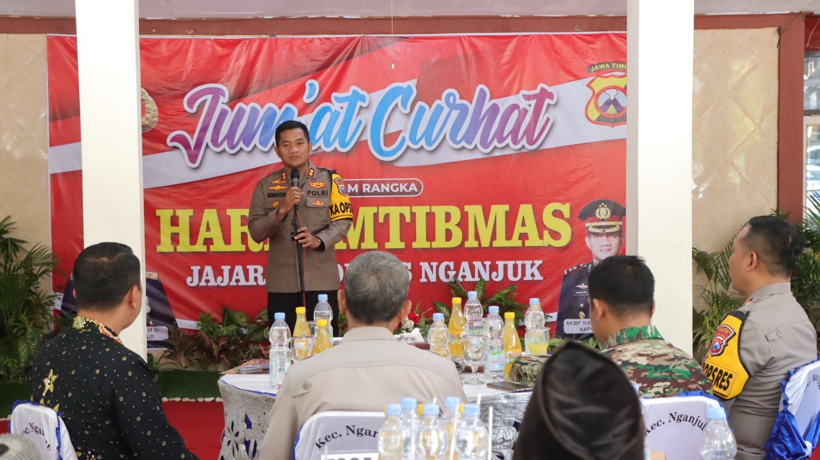Gelaran Program Jum’at Curhat dalam rangka memelihara keamanan dan ketertiban masyarakat (Harkamtibmas)ini dihadiri oleh unsur Forkopimcam Kecamatan Nganjuk, Pemerintahan Desa (Pemdes) se Kecamatan Nganjuk, Tokoh Lintas Agama serta Tokoh Masyarakat.