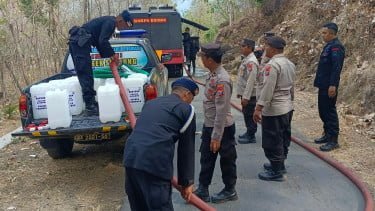"Jalannya sempit untuk menuju ke rumah warga, jadi kami koordinasi dengan pihak BPBD untuk melangsir air dari kendaraan Water Cannon ke mobil milik BPBD Ponorogo," ujar Ipda Wahid di lokasi dropping air untuk warga, Kamis ( 14/9).