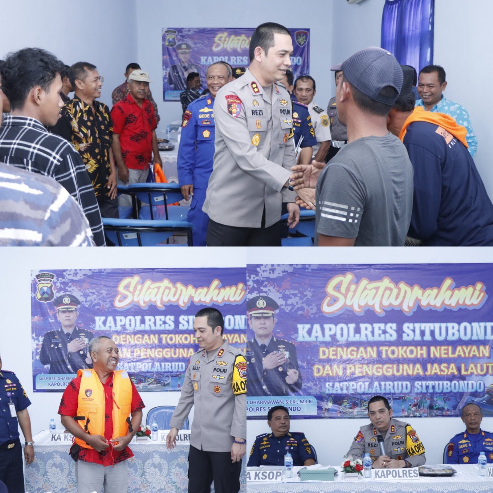 Situbondo l bnewsnasional.id - Kapolres Situbondo AKBP Rezi Dharmawan, S.I.K., M.I.K. bertatap muka dengan masyarakat nelayan dan pengguna jasa laut di wilayah Kabupaten Situbondo.