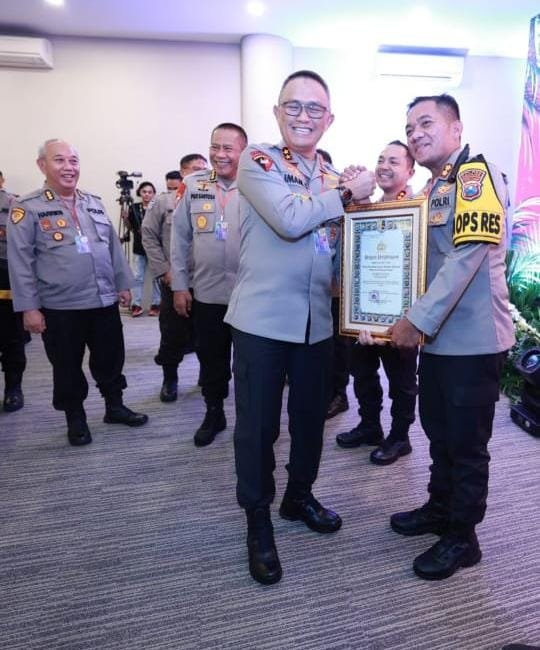 Piagam penghargaan dari Kapolri tersebut diserahkan langsung oleh Kapolda Jawa Timur, Irjen Pol. Drs. Imam Sugianto, M.Si, di Hotel Baobab Safari Resort, Kecamatan Prigen, Kabupaten Pasuruan sebagai bentuk apresiasi atas penilaian 100 atau sempurna Kinerja Pelaksanaan Anggaran Tahun Anggaran 2023 Kategori Pagu besar di lingkungan Polri.