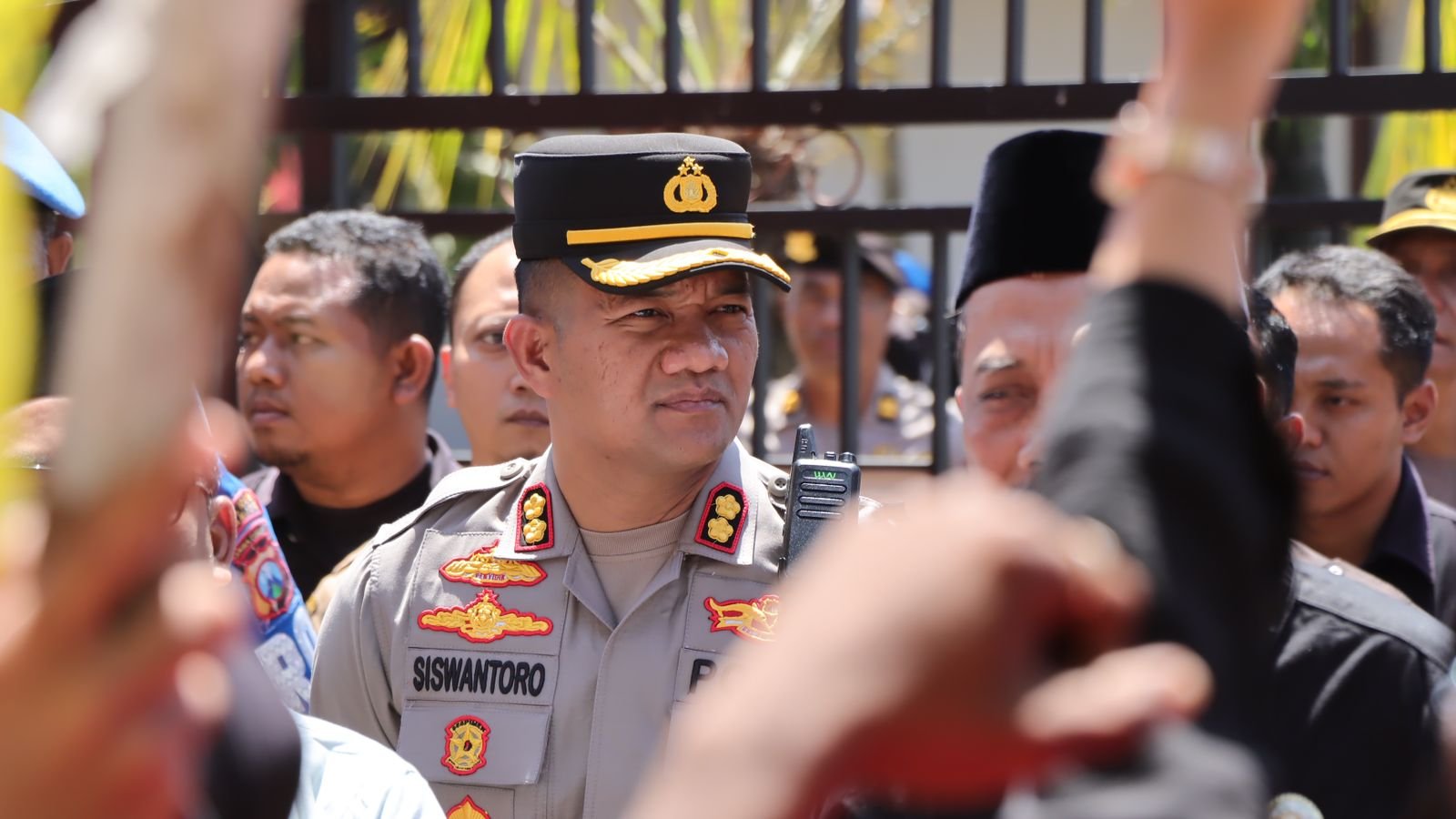 "Kami ada di sini untuk melayani dan melindungi. Sampaikan aspirasi dengan damai dan santun. Mari kita jaga Nganjuk tetap aman dan nyaman," ujar AKBP Siswantoro.