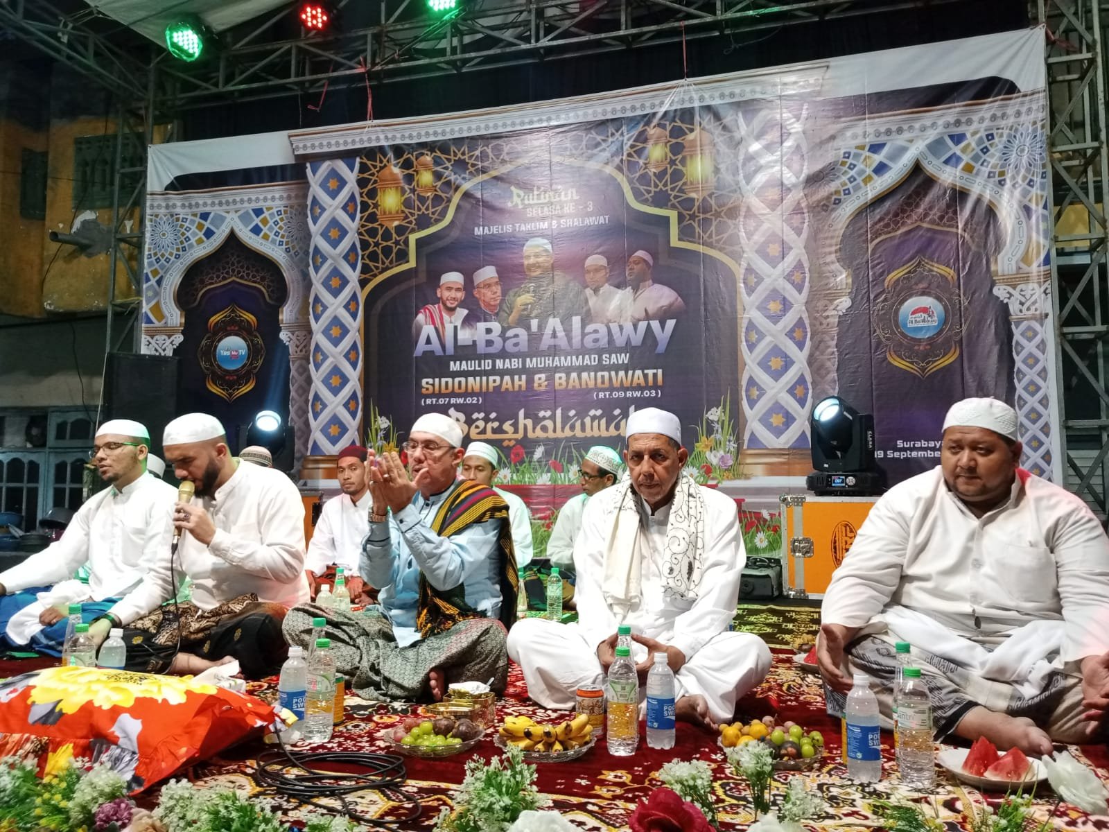 Surabaya - (Berita News Nasional) - Acara Maulid Nabi Muhammad Saw, yang di selenggarakan tiap tahun bertepat di bulan September. Kali ini acara Maulid Nabi Muhammad Saw, di selenggarakan oleh Majelis Taklim dan Sholawat Al- Ba'alawy.