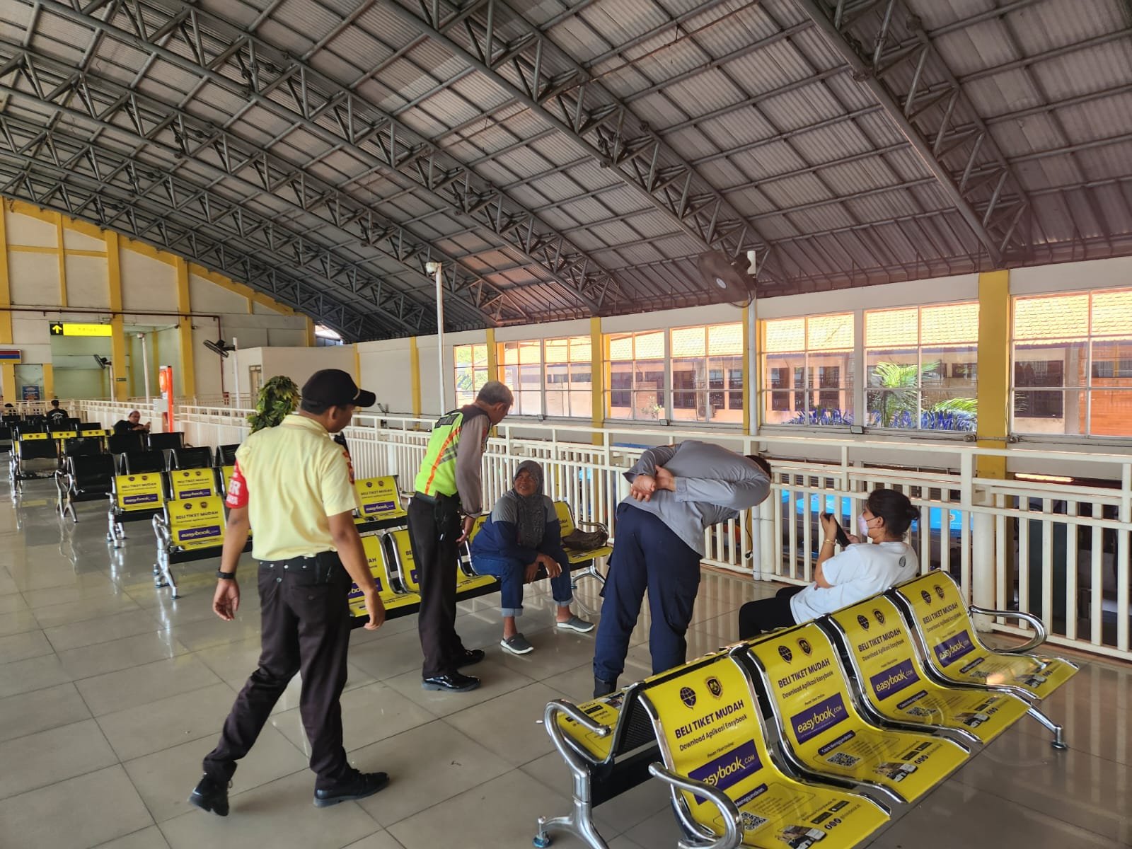 Pengamanan yang dilakukan personel Polresta Sidoarjo, seperti tampak di Terminal Bus Purabaya, Bungurasih, Waru, Minggu (1/9/2024). Personel polisi bersama stake holder terkait melakukan pemeriksaan dan patroli dialogis kepada kru bus maupun penumpang di keberangkatan bus tujuan Bali.