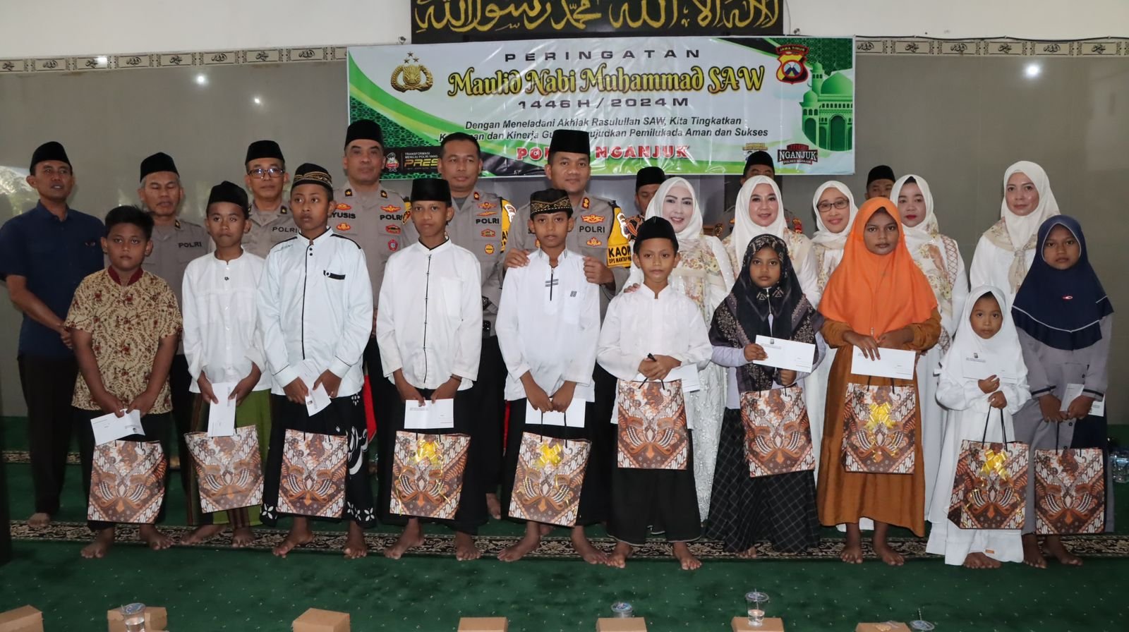 Peringatan Maulid Nabi Muhammad SAW 1446H/2024M kali mengambil tema “Dengan Meneladani Akhlak Rasulullah SAW, Kita Tingkatkan Keimanan dan Kinerja Guna Mewujudkan Pemilukada Aman dn Sukses”.