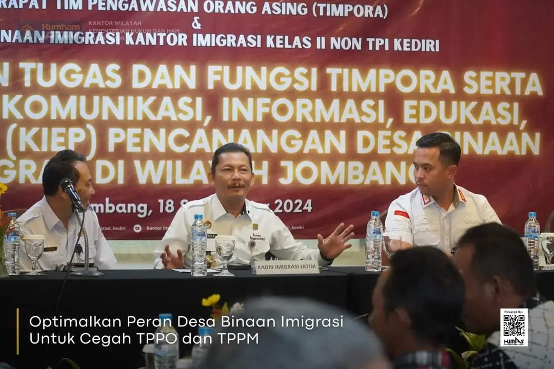 Jombang l BnewsNasional.org - Jajaran keimigrasian Kanwil Kemenkumham Jatim mulai menerapkan strategi preventif untuk mencegah Tindak Pidana Perdagangan Orang (TPPO) dan Tindak Pidana Penyelundupan Manusia (TPPM). Salah satunya dengan mengoptimalkan peran desa binaan imigrasi.