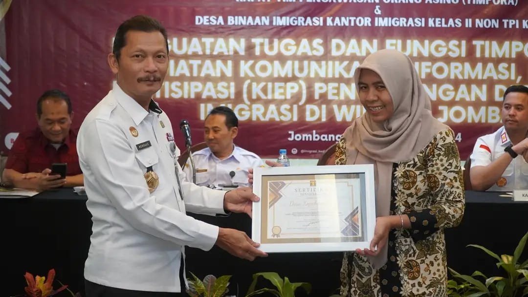 Selain itu, kegiatan ini juga menjadi momentum penting dengan dilaksanakannya sosialisasi dan pemberian penghargaan kepada Desa Kepuhkembeng sebagai Desa Binaan Imigrasi Kediri. Langkah ini dianggap sebagai upaya awal pencegahan terjadinya Tindak Pidana Perdagangan Orang (TPPO) dan Tindak Pidana Penyelundupan Manusia (TPPM) di Kabupaten Jombang.