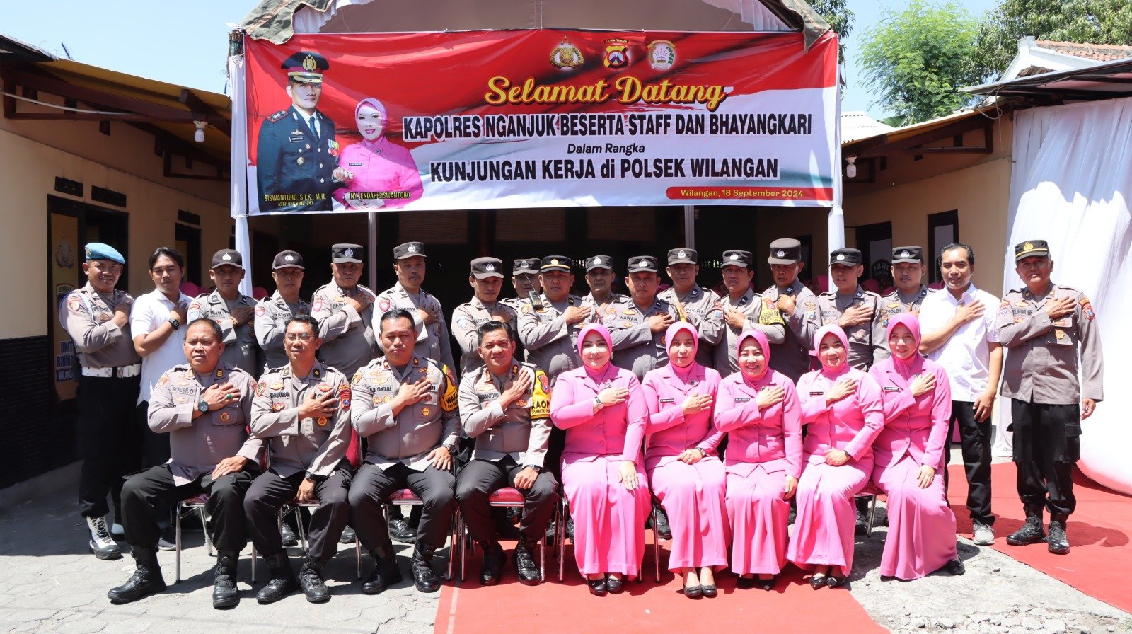 Nganjuk l BnewsNasional.org - Kapolres Nganjuk, AKBP Siswantoro, S.I.K., M.H., didamping Wakapolres, Pejabat Utama (PJU) dan Pengurus Bhayangkari cabang Nganjuk melakukan kunjungan ke tiga Polsek sekaligus yakni Polsek Nganjuk Kota, Polsek Bagor dan Polsek Wilangan, Rabu (18/9/2024).