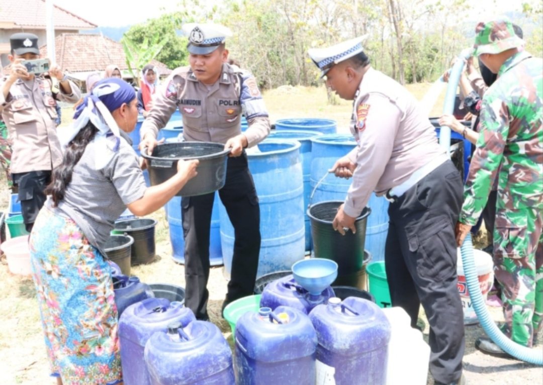Kasatlantas AKP Diyon Fitrianto, S.H., M.H. menjelaskan, bantuan ini merupakan bentuk kepedulian Polri terhadap masyarakat yang kekurangan air bersih.