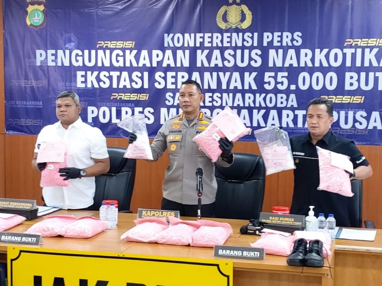 Sementara pil ekstasi yang diamankan sebanyak 55 ribu butir yang disimpan di dalam koper di kawasan Gunung Sahari dengan total Rp 27,5 miliar.