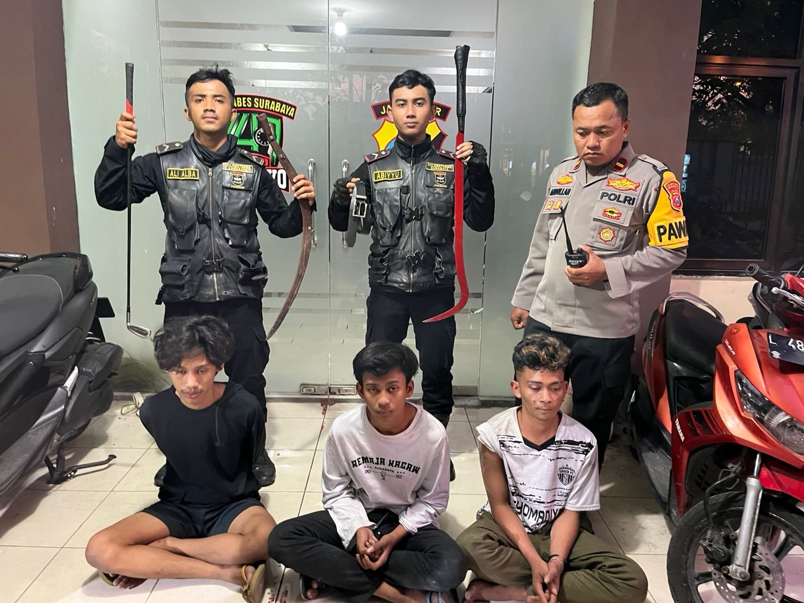 "Ketika tim tiba di sekitar Jalan Kapasari, beberapa remaja berusaha kabur. Tim Respatti langsung melakukan pengejaran dan berhasil mengamankan tiga remaja di Jalan Ngaglik, yang diidentifikasi sebagai MD (21), AT (16), dan FF (17)," ungkap AKBP Teguh.