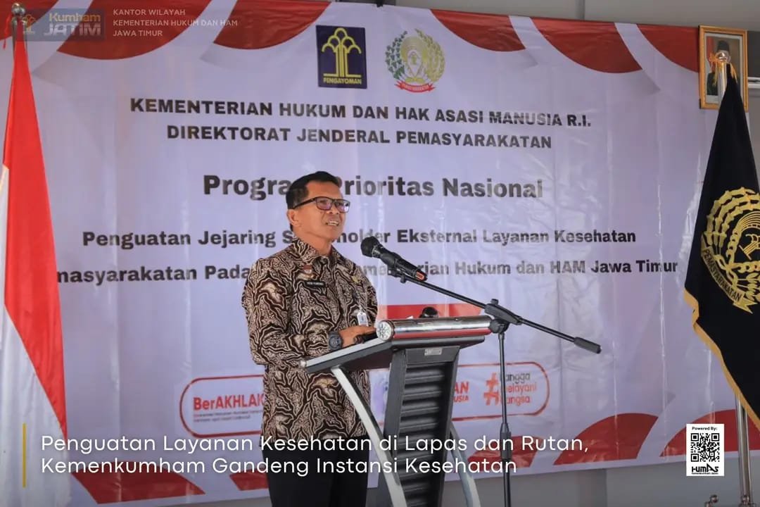 Kakanwil Kemenkumham Jawa Timur, Heni Yuwono, dalam sambutannya menekankan pentingnya peran Lapas dan Rutan dalam penyediaan layanan kesehatan bagi warga binaan.