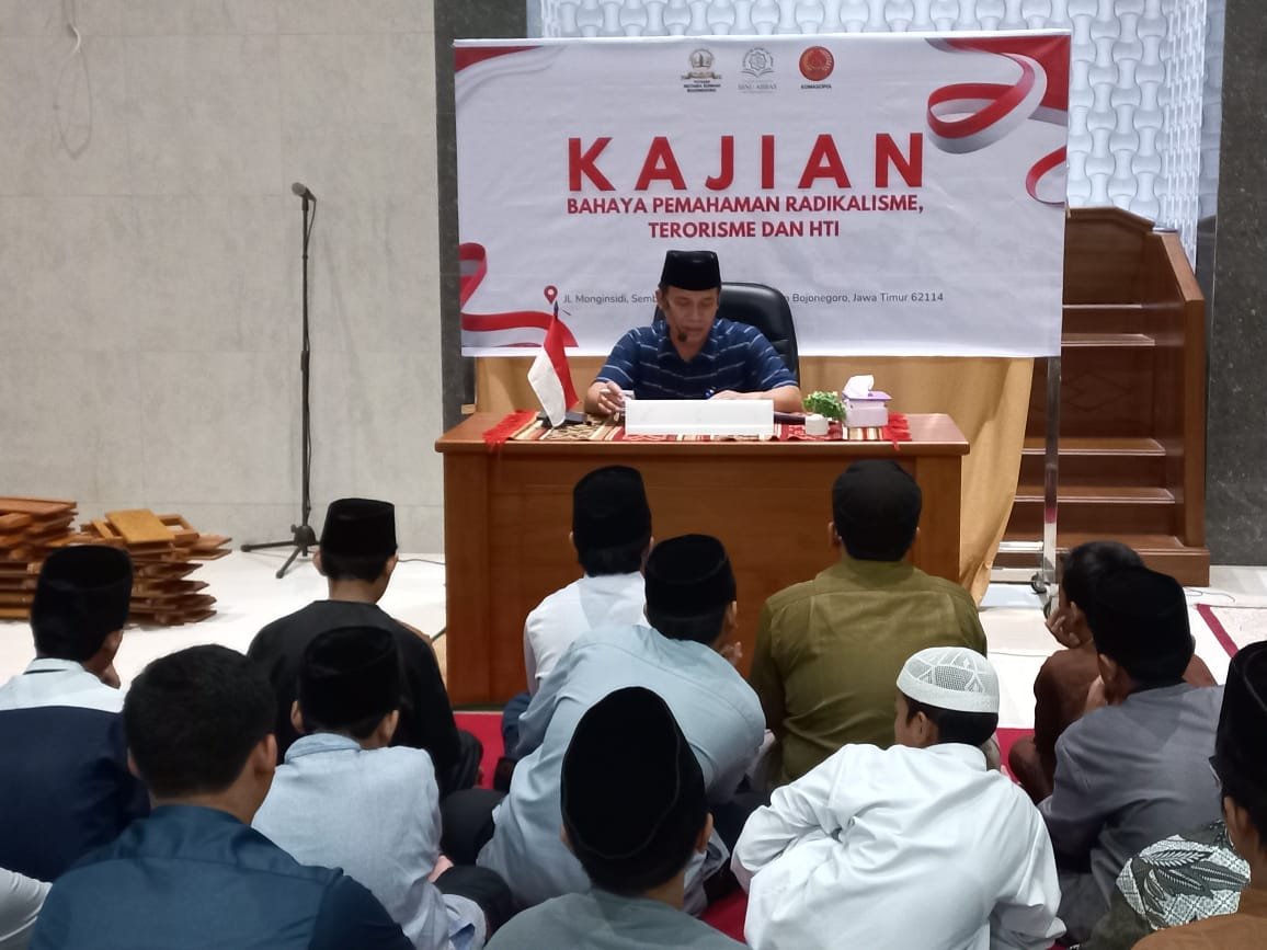 Bojonegoro l BnewsNasional.org - Polres Bojonegoro Polda Jatim melalui Satuan Intelkam menggelar kajian mengenai bahaya pemahaman radikalisme, terorisme, dan Hizbut Tahrir Indonesia (HTI) di pondok pesantren (Ponpes) Ibnu Abbas, Desa Sembung, Kecamatan Kapas, Kabupaten Bojonegoro, Sabtu (26/10/2024) malam.