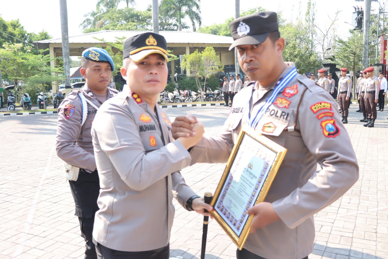 Nganjuk | (Berita News Nasional) Kapolres Nganjuk AKBP Muhammad, S.H., S.I.K., M.Si., memberikan piagam penghargaan kepada 6 anggota Bhabinkamtibmas yang dinilai berprestasi sebagai bentuk apresiasi atas kinerja yang ditunjukkan oleh mereka.