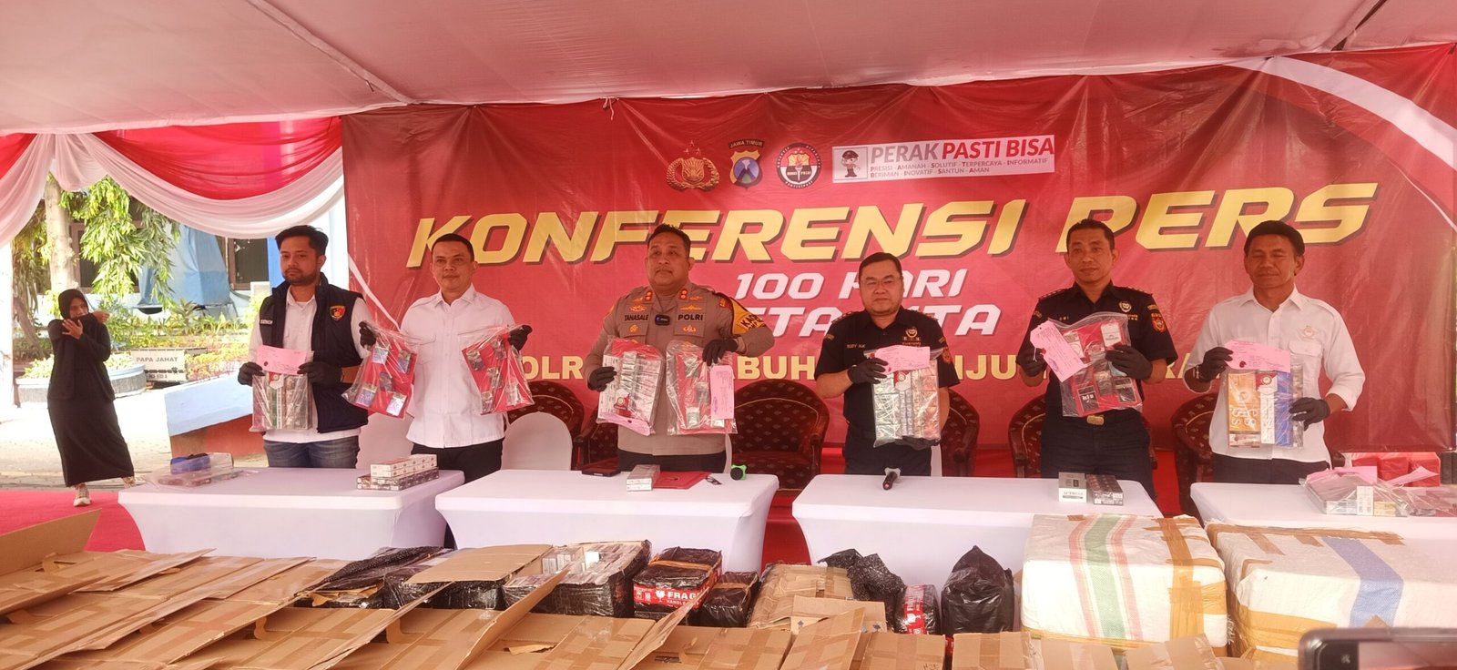 Tanjungperak l bnewsnasional.id - Kepolisian Resort (Polres) Tanjung Perak Surabaya bersama Bea Cukai mengagalkan penyelundupan jutaan batang Rokok Ilegel berbagai merk.