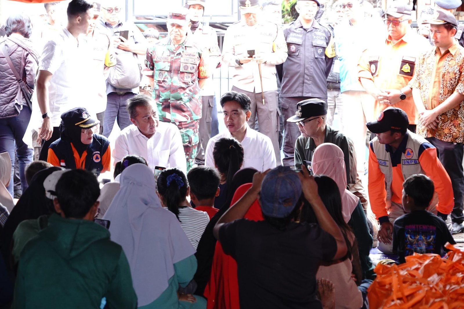 Rangkaian Pengamanan Wakil Presiden tiba di posko pengungsian didampingi Kapolda Jabar dan rombongan. Personel kepolisian dikerahkan untuk mengatur jalur kedatangan dan memastikan pengamanan di area pengungsian.