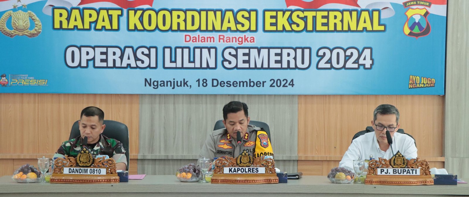 Nganjuk l bnewsnasional.id – Dalam rangka persiapan Operasi Lilin Semeru 2024, Polres Nganjuk menggelar rapat koordinasi eksternal pada Rabu (18/12/2024) pukul 09.00 WIB di Rupatama Polres Nganjuk.