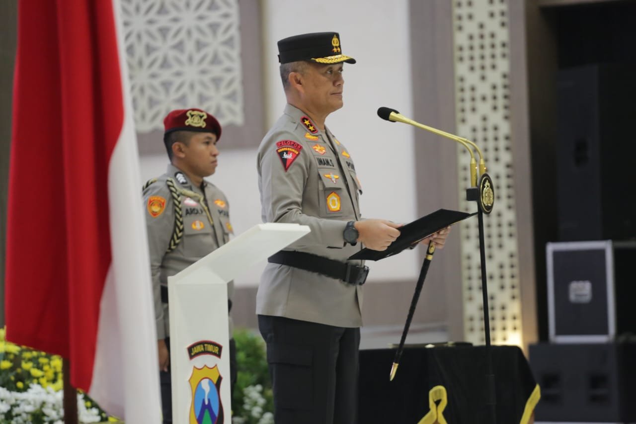 Surabaya l bnewsnasional.id - Kapolda Jawa Timur Irjen Pol Drs.Imam Sugianto.M.Si memimpin upacara serah terima jabatan (Sertijab) 23 Pejabat Utama (PJU) dan Kapolres jajaran Polda Jawa Timur.