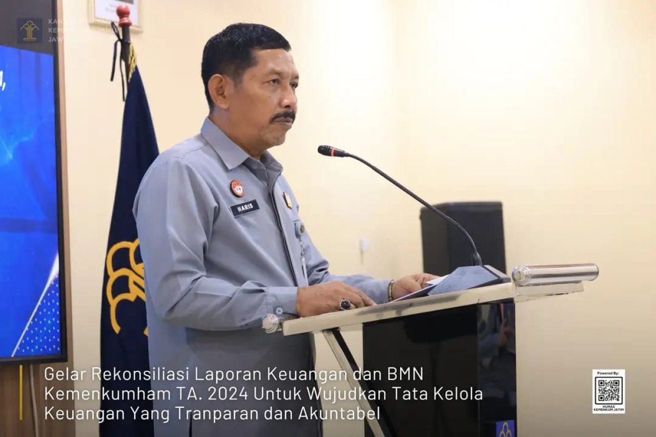 Sidoarjo l bnewsnasional.id - Optimalisasi pengelolaan Laporan keuangan dan BMN terus dilakukan untuk Mewujudkan tata kelola keuangan negara yang transparan dan akuntabel. Karenanya pada Senin (20/01) digelar Rekonsiliasi Data Laporan Keuangan dan BMN Kemenkumham T.A. 2024 pada Jajaran Kementerian Hukum, Kementerian Hak Asasi Manusia, dan Kementerian Imigrasi & Pemasyarakatan di Wilayah Jawa Timur.