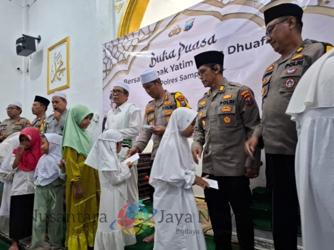 Selain buka bersama, Kapolres Sampang AKBP Hartono didampingi PJU Polres Sampang memberikan santunan kepada anak yatim.