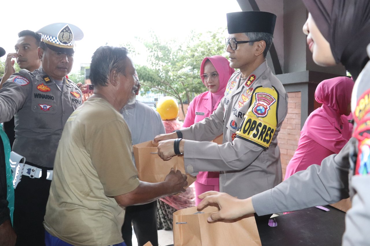 Setelah mengikuti rangkaian pemeriksaan kesehatan, Kapolres membagikan ratusan paket takjil dan makanan berbuka puasa.