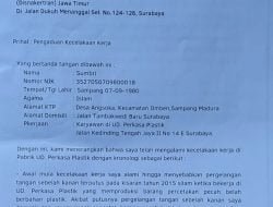 Sementara itu, sanak saudara dari Bapak Sumbri, meminta kepada Disnakertrans Provinsi Jawa Timur agar memperhatikan nasib Sumbri yang merupakan seorang buruh pekerja di Pabrik percetakan barang pecah belah berbahan plastik berlokasi di Jalan Kedinding Tengah Jaya No.14 E Surabaya.