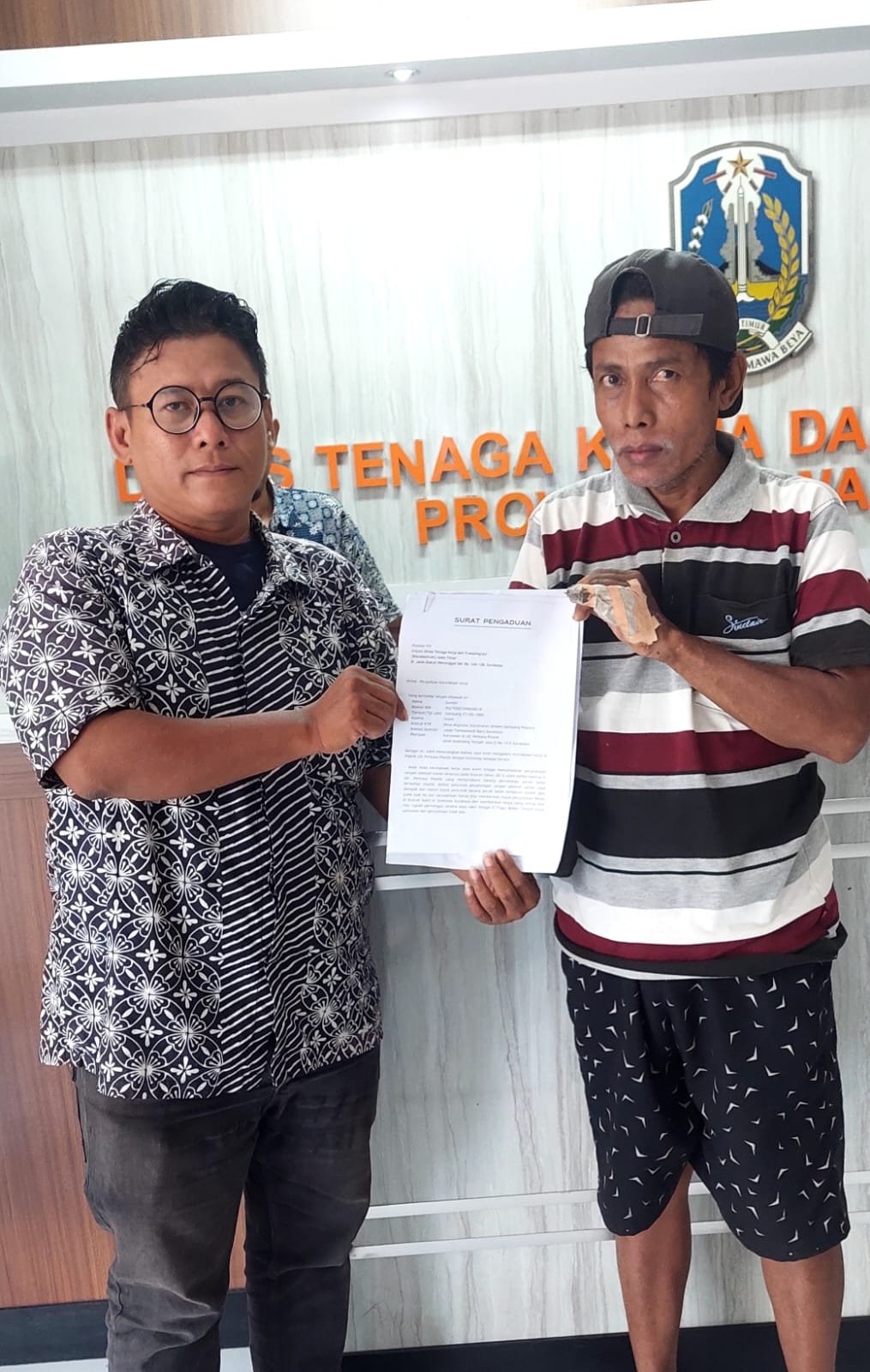 Surabaya | (Berita News Nasional) Sumbri (43 tahun) korban kecelakaan kerja di Pabrik percetakan barang pecah belah berbahan plastik resmi membuat laporan ke Dinas Tenaga Kerja dan Transmigrasi (Disnakertrans) Provinsi Jatim, yang berkantor di Jalan Dukuh Menanggal No.124-126 Surabaya.
