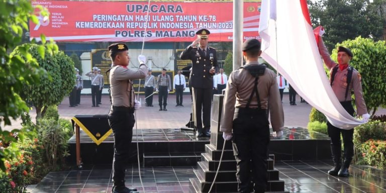 Beritanewsnasional.com - Malang - Polres Malang, Polda Jatim, menggelar upacara bendera dalam rangka memperingati Hari Kemerdekaan Republik Indonesia yang ke-78 di Lapangan Satya Haprabu, Mapolres Malang, Kamis (17/8/2023). Kegiatan ini dihadiri oleh seluruh personel Polres beserta Aparatur Sipil Negara (ASN) Polres Malang.