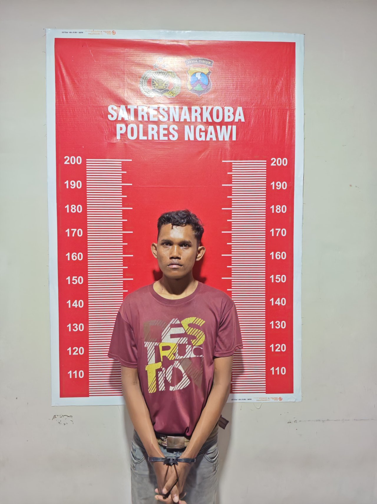 Tersangka yang diamankan diketahui bernama Kukuh Cahyono alias Lingling, laki-laki kelahiran Ngawi, 14 November 1998, warga Dusun Tepas, Kecamatan Geneng, Kabupaten Ngawi. Dalam penangkapan tersebut, petugas mengamankan barang bukti berupa serbuk kristal putih yang diduga narkotika golongan I jenis sabu dengan total berat bruto sekitar 11,27 gram.