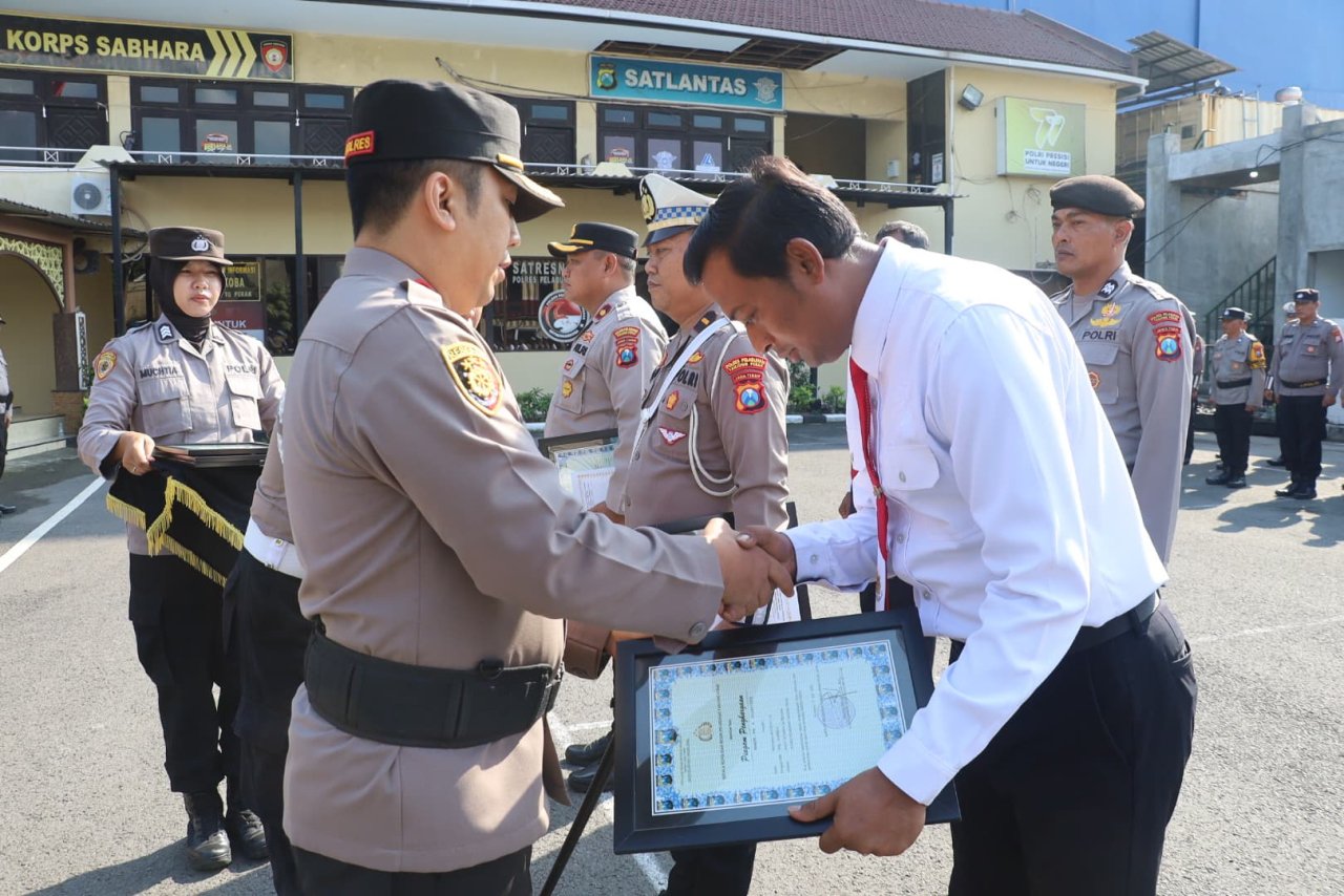 TANJUNGPERAK l bnewsnasional.id - Polres Pelabuhan Tanjung Perak menggelar apel pemberian penghargaan kepada sejumlah anggotanya yang dinilai berprestasi. Apel yang dipimpin langsung oleh Kapolres Pelabuhan Tanjung Perak, AKBP Wahyu Hidayat, ini berlangsung khidmat di lapangan Mako Polres Pelabuhan Tanjung Perak pada Selasa (17/6/2025).