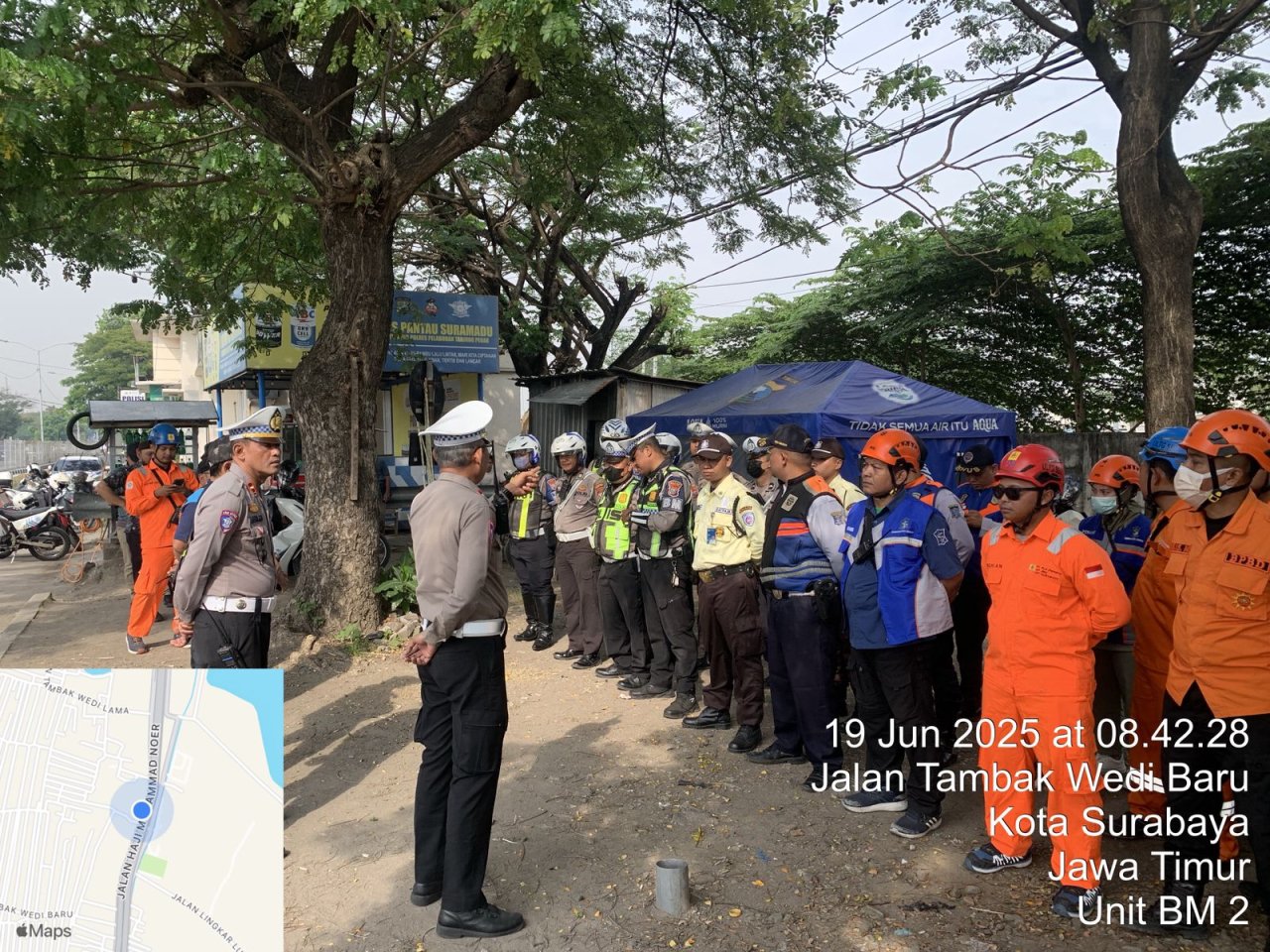 Kegiatan yang dilakukan pada Kamis Pagi (19/06/2025), diikuti petugas dari Badan Penanggulangan Bencana Daerah (BPBD) Kota Surabaya, Dinas Pemadam Kebakaran (Damkar) Kota Surabaya, petugas dari Dinas Perhubungan dan Kesehatan Kota Surabaya, yang dimulai dengan Apel gabungan.