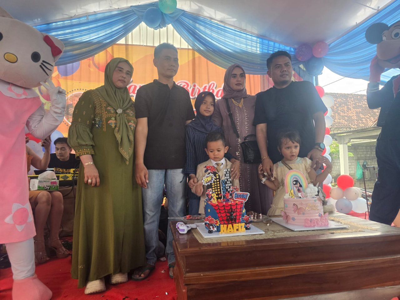 Lamongan l bnewsnasional.id - Keluarga Besar Baihaki Akbar dan Devi Lianti menggelar acara super meriah dalam rangka merayakan ulang tahun putra-putrinya yang bernama Salsabila Balqis Akbar yang ke-4 tahun dan Muhammad King Hafiz Akbar yang ke-3 tahun di kediamannya, di Dusun Sawo, Desa Sumberejo, Lamongan. Minggu, 06/07/2025.