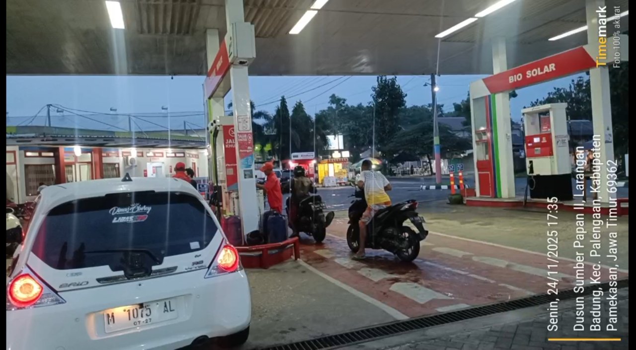 Pamekasan, bnewsnasional.id - Dugaan praktek penyalahgunaan Bahan Bakar Minyak (BBM) bersubsidi jenis Pertalite dan sokar masih “bebas” di wilayah Kabupaten Pamekasan. Seperti yang terdapat di Stasiun Pengisian Bahan Bakar Umum (SPBU) 54.693.11 di jalan Dusun Sumber Papan II, Larangan Badung, Kec. Palengaan, Kabupaten Pamekasan, Jawa Timur.