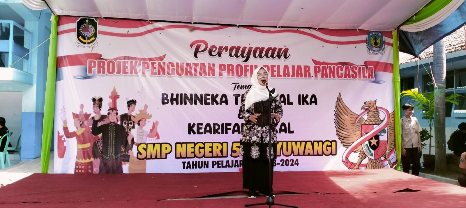 ” ” Hari ini siswa-siswi SMP N 5 Banyuwangi menggelar kegiatan berdasarkan program kurikulum merdeka P5 Pancasila ini salah satunya hari ini menampilkan hasil yang dimaksud, kurang lebih 2 tahun program ini berjalan Alhamdulillah kalau kita perhatikan anak-anak siswa-siswi SMP N 5 Banyuwangi cukup potensial “, ucapnya.