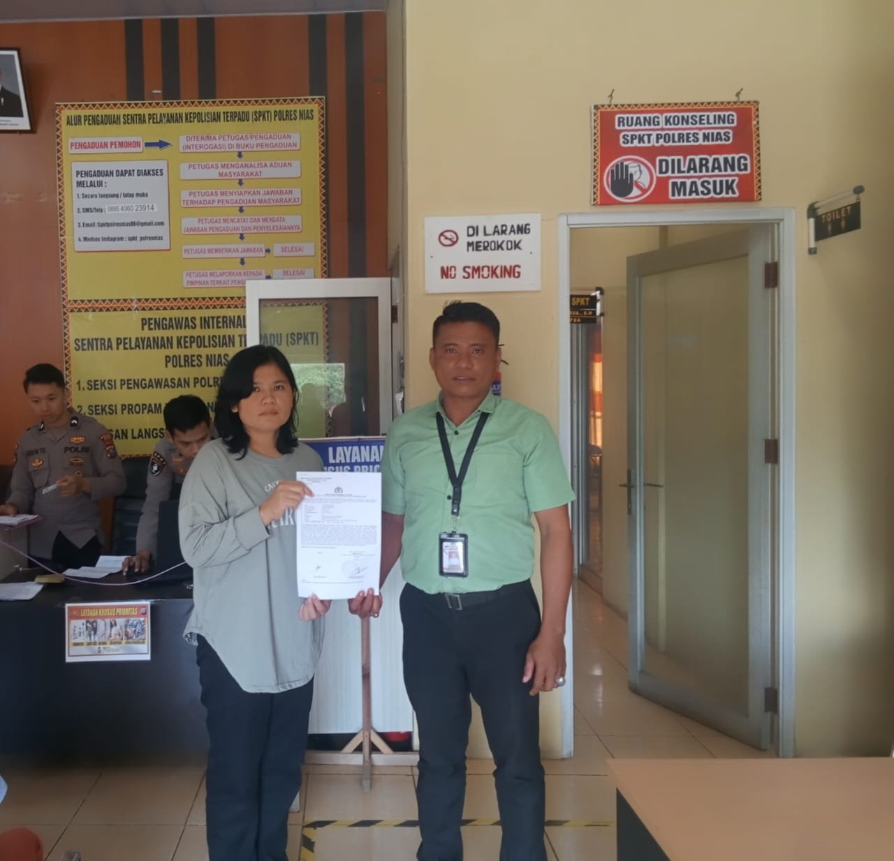Susilawati Wau telah membuat laporan resmi di Polres Nias dengan nomor : STTLP/721/XII/2025/SPKT/Polres Nias/Polda Sumatera Utara, tanggal 5 Desember 2025.