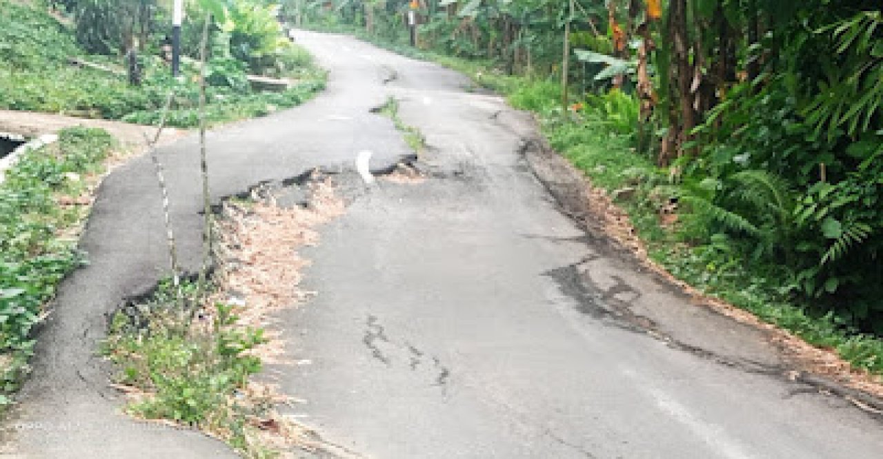 Jalan yang berada dalam kondisi hampir terputus ini disebabkan oleh pergeseran tanah, yang menyebabkan bagian jalan retak sepanjang sekitar 25 meter.