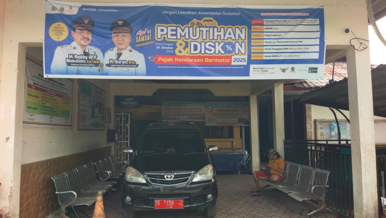 Gunungsitoli, NIAS, bnewsnasional.id - Pelayanan di Unit Pelaksana Teknis Daerah (UPTD) Samsat Nias di Gunungsitoli menuai sorotan tajam. Kantor yang beralamat di Jln. Ampera Nomor 1 Gunungsitoli, Nias, ini diduga kuat tidak melaksanakan penuh instruksi Gubernur Sumatera Utara mengenai program pemutihan dan penghapusan denda pajak kendaraan bermotor tahun 2025.