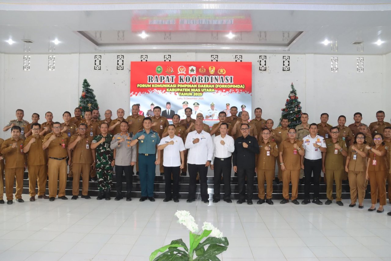 Nias Utara, bnewsnasional.id-15 Desember 2025.Pemerintah Kab. Nias Utara melaksanakan Rapat Koordinasi Forum Komunikasi Pimpinan Daerah (FORKOPIMDA) Kabupaten Nias Utara Tahun 2025, bertempat di Aula Tafaeri Kab. Nias Utara, Senin, 15 Desember 2025.