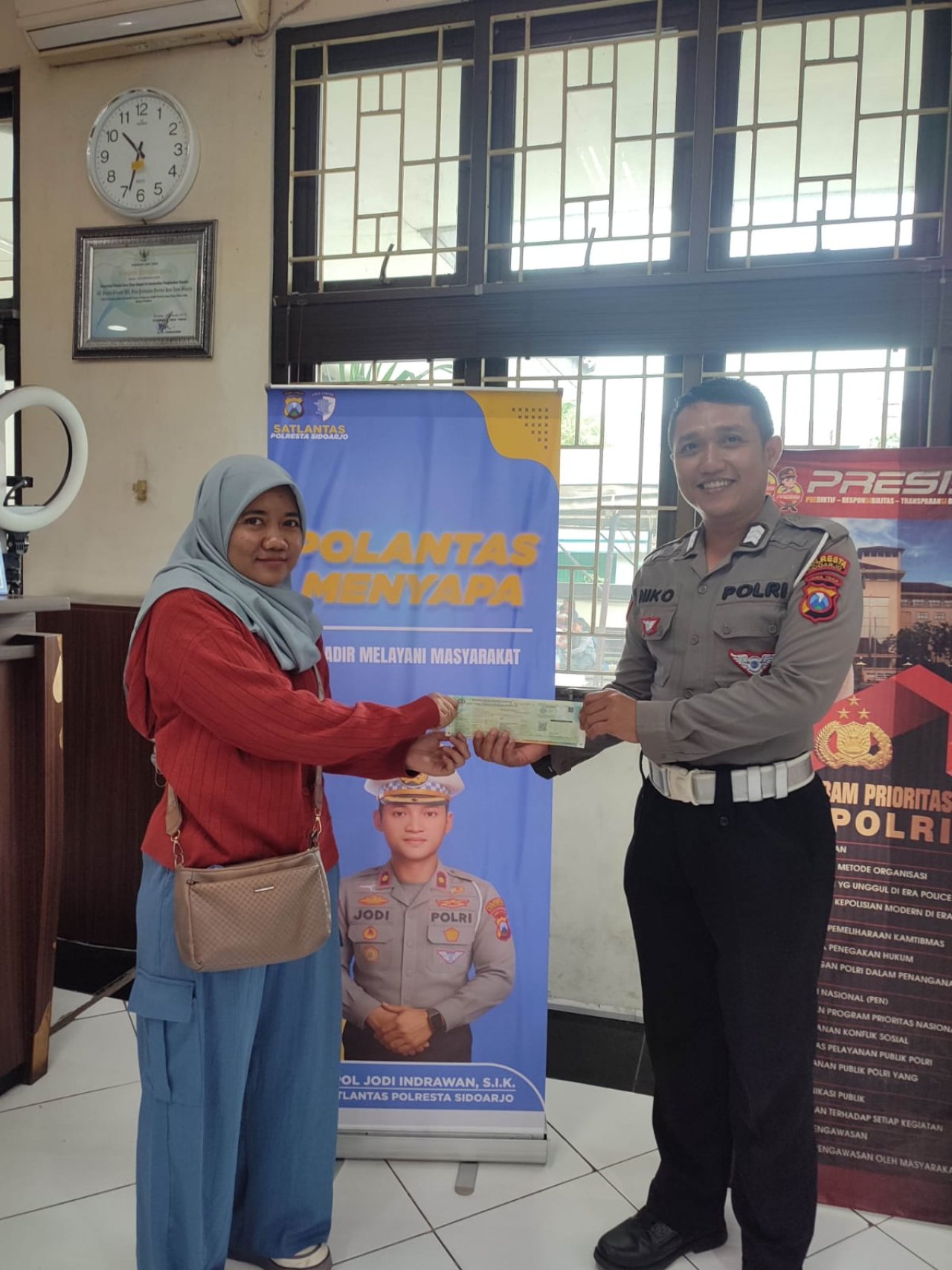 Samsat Sidoarjo Kota dalam melayani masyarakat saat melakukan wajib pajak Melalui "Program Polantas Menyapa " Pelayanan sangat cepat dan petugasnya pun sangat ramah sopan serta humanis. Kemudian, ketika ada masyarakat yang membutuhkan informasi petugasnya juga memberikan penjelasan sangat baik dan sopan Warga menilai, pelayanan di Samsat Sidoarjo kota untuk segi pelayaannya sudah sangat bagus.